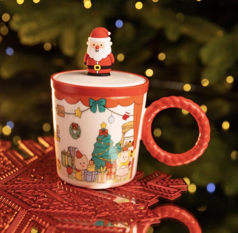 Порцелянова чашка об'ємом 400 мл привертає увагу завдяки сезонному дизайну з новорічними мотивами. На зовнішній поверхні розміщено ілюстрації ялинки, подарунків, святкових вінків і персонажів у тематичному вбранні. Червоний рельєфний обідок і ручка, що нагадує скручену мотузку, створюють візуальний акцент, а біла порцелянова кришка з фігуркою Санти завершує композицію. Форма чашки звужується донизу: верхній діаметр становить 9 см, нижній — 7 см, що забезпечує зручне тримання. Висота виробу — 13 см, вага — 500 г, що робить її стійкою на поверхні. Кришка щільно прилягає, зберігаючи тепло напою, а фігурка на ній виконує декоративну функцію. Матеріал — гладка порцеляна без додаткових покриттів, придатна для щоденного використання. Чашка постачається в подарунковій коробці, що спрощує її презентацію як сезонного подарунка або товару для святкових вітрин. Завдяки чітко окресленим характеристикам і тематичному оформленню, вона підходить для зимових колекцій або корпоративних подарунків в період новорічних свят. Характеристики: Тип: чашка з кришкою Матеріал: порцеляна Об’єм: 400 мл Верхній діаметр: 9 см Нижній діаметр: 7 см Висота: 13 см Вага: 500 г Кришка: порцелянова, з фігуркою Санти Упаковка: подарункова коробка Дизайн: новорічний, з ілюстраціями ялинки, подарунків, персонажів, червоним обідком і ручкою