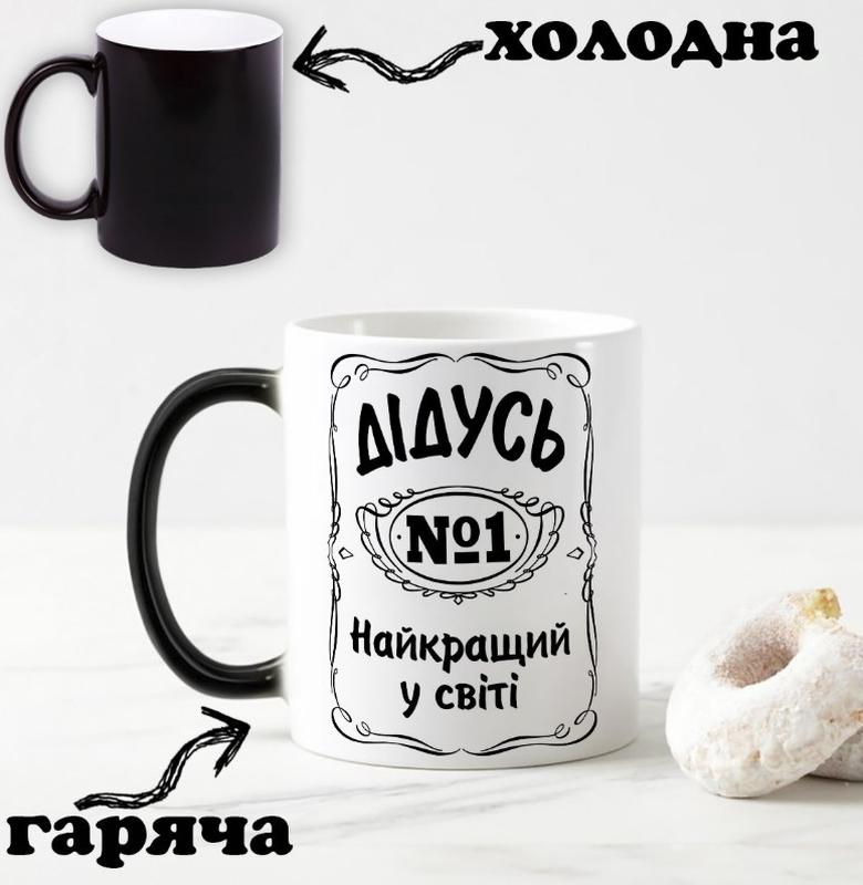 Чашка хамелеон на подарок для дедушки с надписью "дедушка No1 лучший в мире"