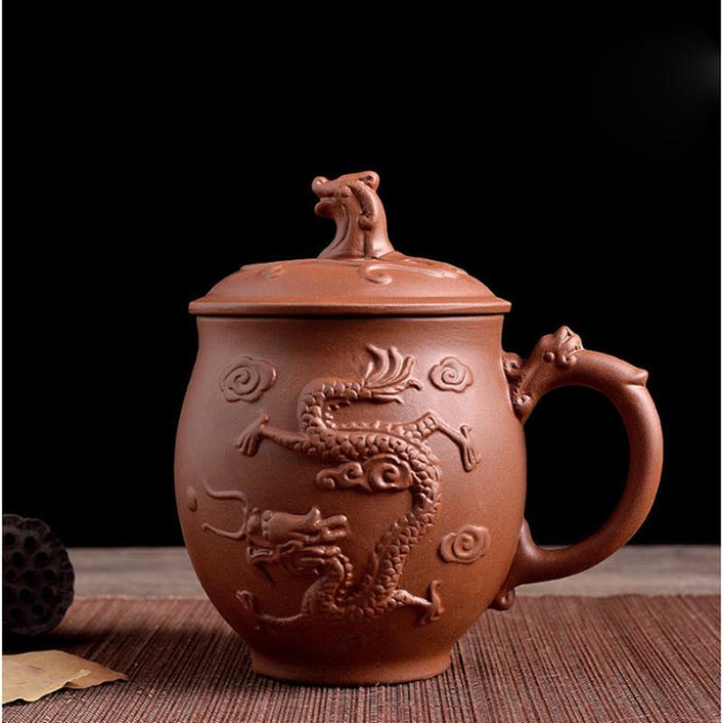Глиняная чашка «пузатый дракон» 500 мл с крышкой и ситечком для заваривания листового и тр...