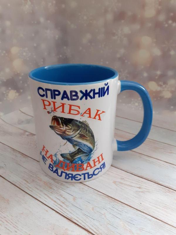 Чашка настоящий рыбак на диване не валяется! голубой, 330
