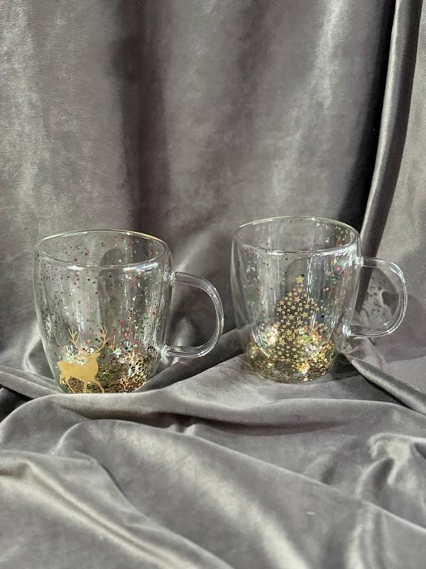 Набір чашок новорічних vittora свято в чашці з подвійним дном 2 шт 350 мл прозорий vt-5330...