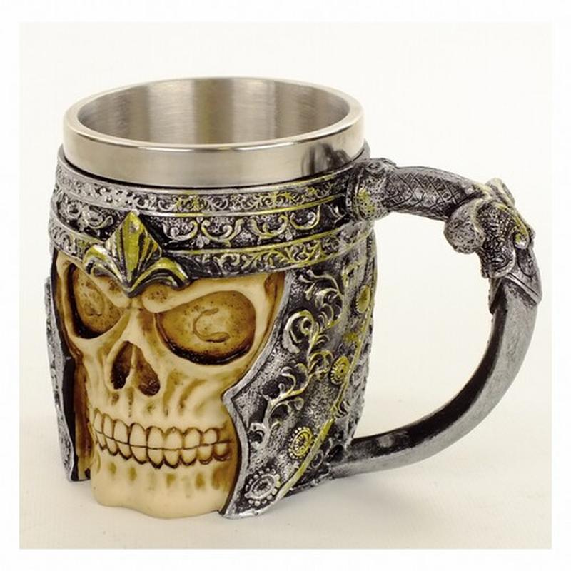 Необычная чашка в готическом стиле в форме черепа. Внутренняя часть и верх выполнены из нержавеющей стали. Диаметр -- 8,5 см, высота -- 11 см. Объем - 400 мл (не под край).