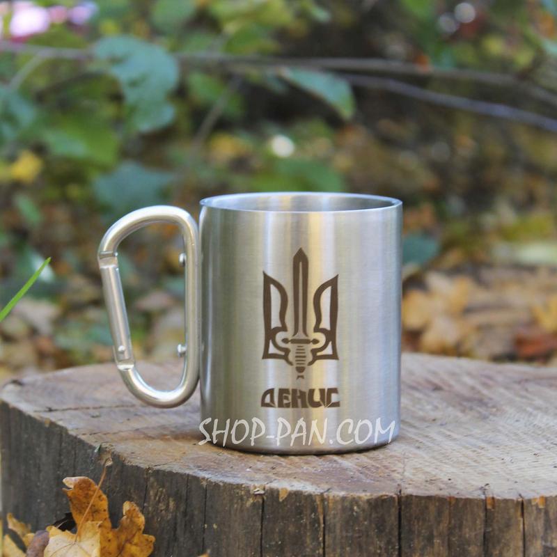 Металлическая чашка 250 мл с карабином и гравировкой - герб ua зсу ссо всу