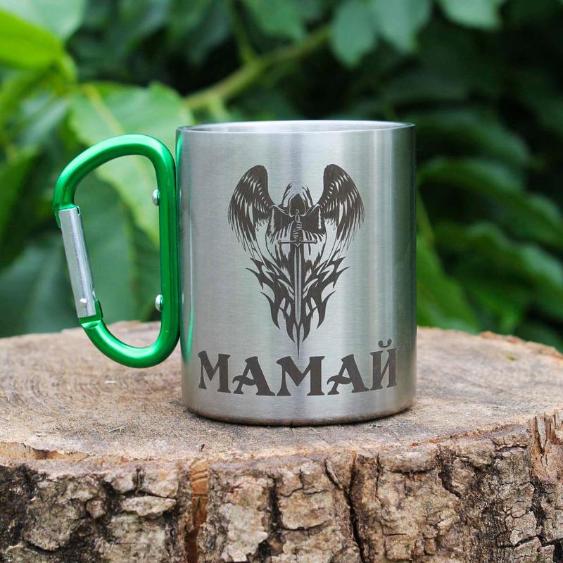Металева чашка 250 мл з карабіном і гравіюванням - мамай