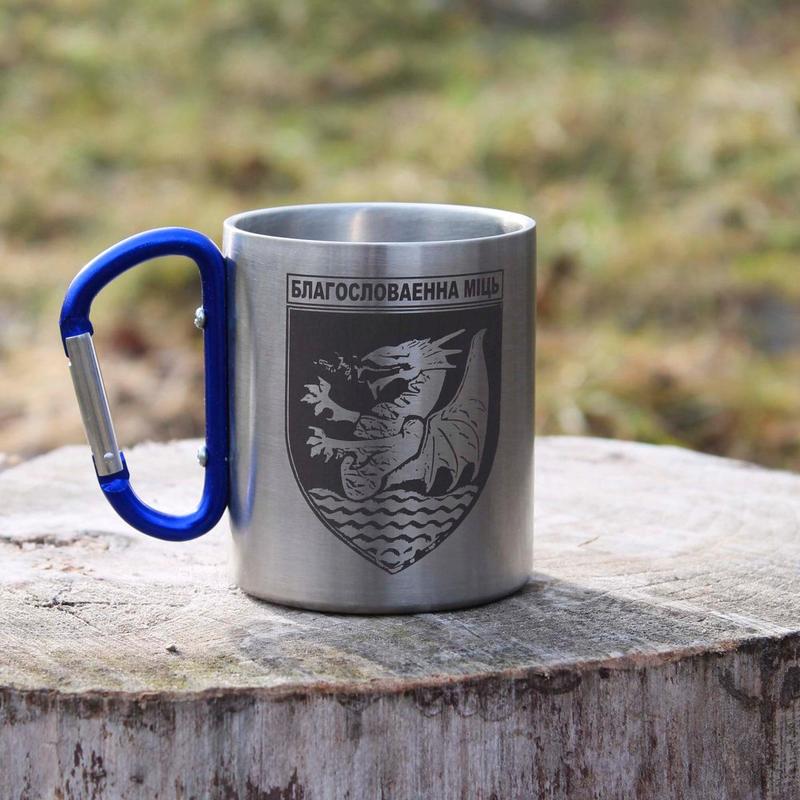 Металева чашка 250 мл з карабіном і гравіюванням - благословення міць