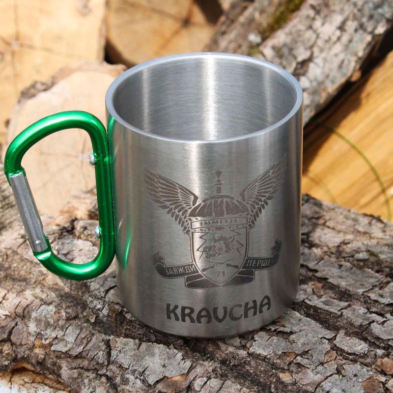 Металева чашка 250 мл з карабіном і гравіюванням - завжди перші