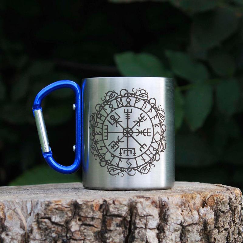 Металева чашка 250 мл з карабіном і вашим гравіюванням