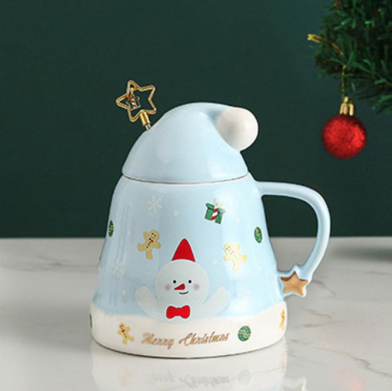 Кружка с крышкой и ложкой елка 5691 470 мл голубая