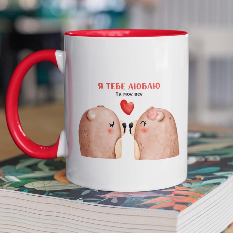 Чашка керамическая с принтом "я тебя люблю" 330 мл, белая с красной ручкой