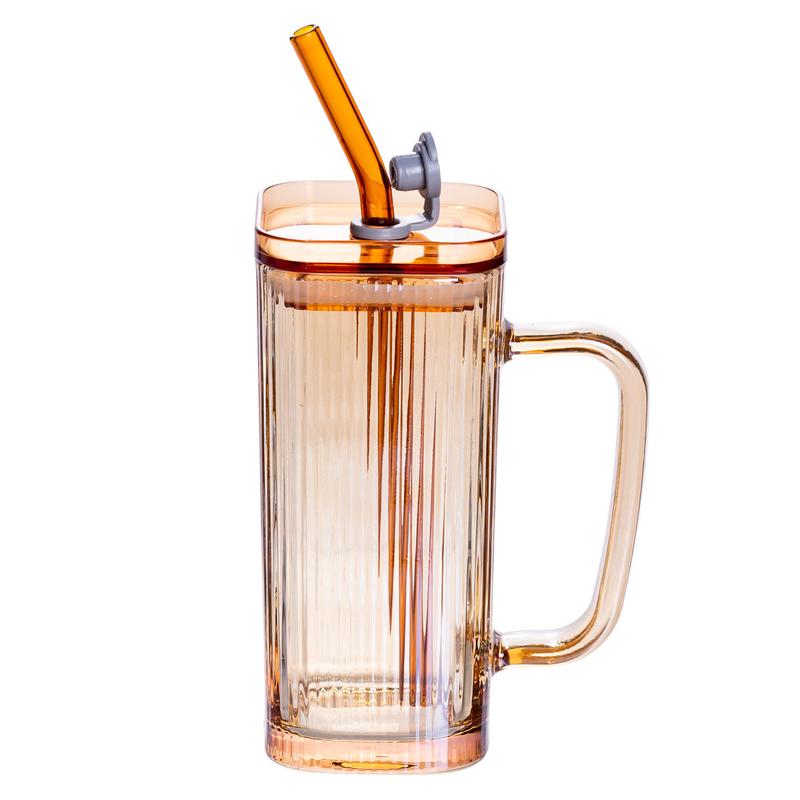 Стеклянная кружка с трубочкой и крышкой -- это удобный и стильный аксессуар для повседневного использования. Она выполнена из прочного прозрачного стекла с приятным янтарным оттенком, имеет удобную ручку для комфортного удержания и герметичную крышку, которая предотвращает проливание. В комплекте предусмотрена многоразовая трубочка, что делает кружку практичным решением для холодных и горячих напитков. Такой вариант идеально подойдет для дома, офиса или в подарок, а современный дизайн добавит эстетики в каждое чаепитие или кофепитие. Основные характеристики стеклянной чашки с крышкой и трубочкой: Размер: 6×6×13.5 см; Объем: 280 мл; Верхний диаметр: 5×5 см; Нижний диаметр: 6×6 см; Материал: стекло, пластик (крышка). Особенности стеклянной кружки с трубрчкой на подарок: Изготовлена из прочного стекла; Удобная ручка для комфортного удержания; Герметичная крышка предотвращает проливание напитков; В комплекте многоразовая трубочка для удобного использования; Подходит для горячих и холодных напитков; Легко мыть и ухаживать за изделием; Стильный современный дизайн, который дополнит любую кухню. Стеклянная кружка с крышкой и трубочкой -- это не только удобный и практичный аксессуар для повседневного использования, но и стильный элемент вашей кухни. Она идеально подходит для тех, кто ценит комфорт, заботится об экологии и любит наслаждаться напитками с удовольствием.