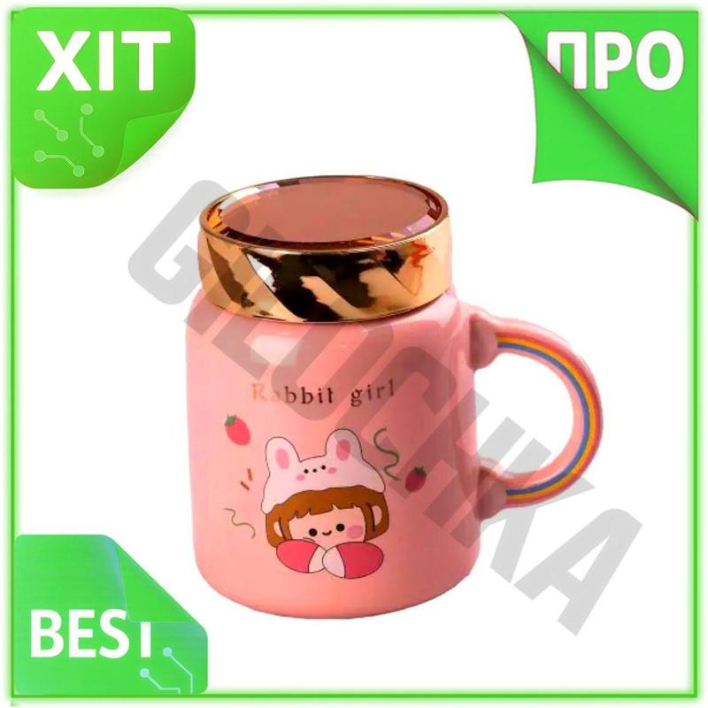 Ve чашка порцелянова 420 мл new version рожева з кришкою для дівчинки подарунок для чаю та...