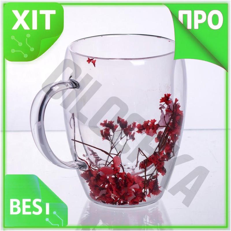 Ve чашка с двойными стенками new version боросиликатное стекло 350 мл для чая кофе с сухоц...