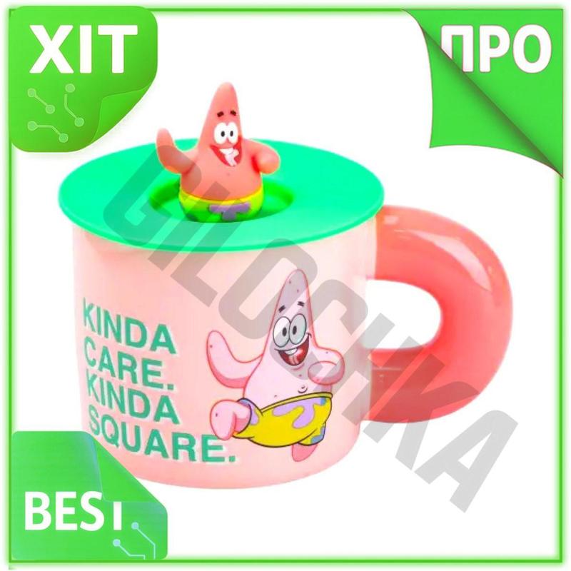 Ve чашка фарфоровая с крышкой new version патрик стар 400 мл розовый напиток для чая кофе...