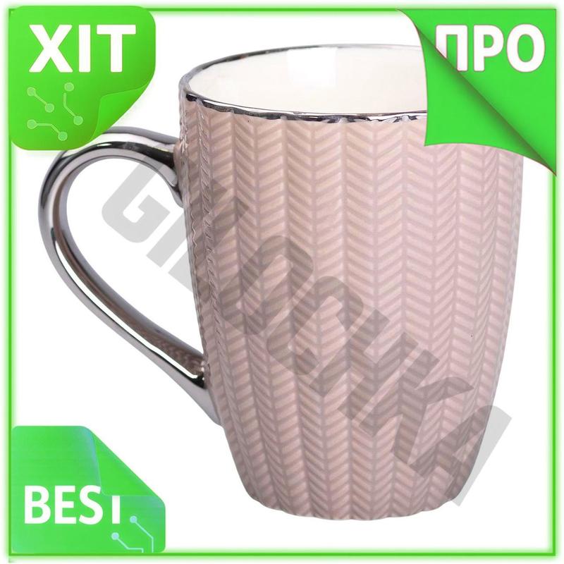 Ve чашка фарфоровая 400 мл new version кремовая с серебристым ободком для чая и кофе элега...