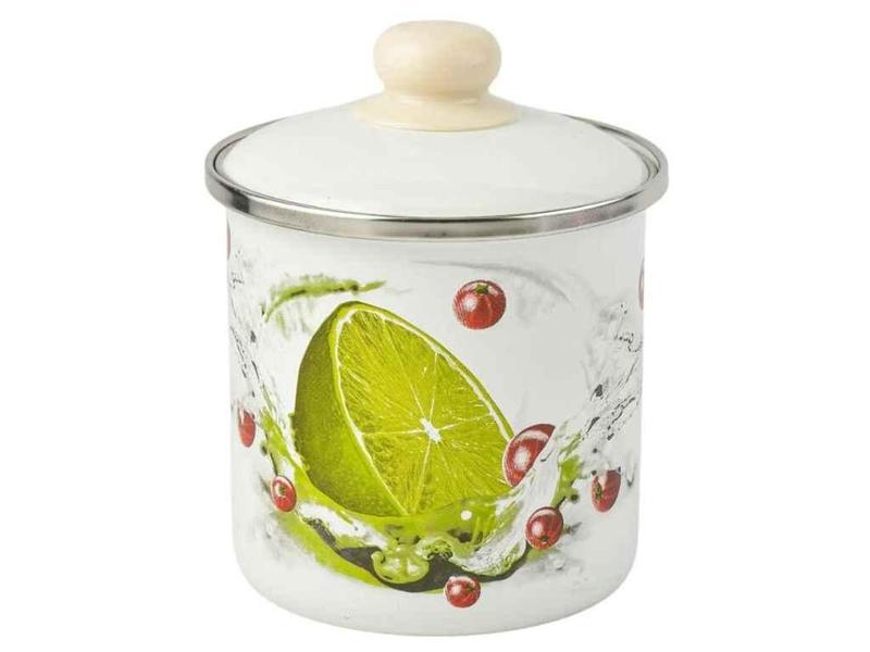 Кружка ем. 1л /2 с крышкой с н/ж ободком лайм (белая) i0207/2 тм idilia