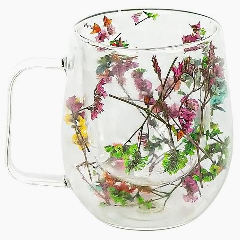Чашка с двойным дном 350мл стекло с цветами new knz