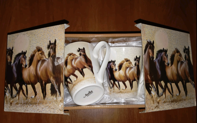 Набір дві нові чашки у дуже красивій коробці. Намальований табун коней. Актуальний подарунок на Новий рік, оскільки кінь - це символ 2026.