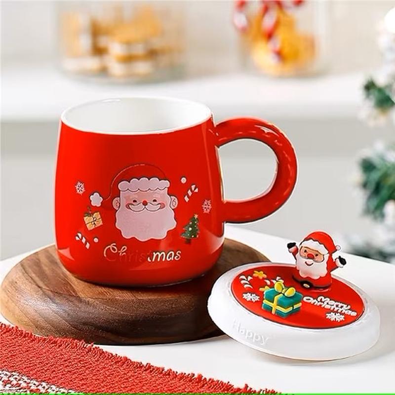 Новорічна чашка з силіконовою кришкою у яскраво-червоному кольорі з зображенням Діда Мороза та новорічними мотивами. Чашка має зручну ручку та кришку, що дозволяє зберігати напій теплим. Ідеальний подарунок до свят. Обʼєм 400 мл.