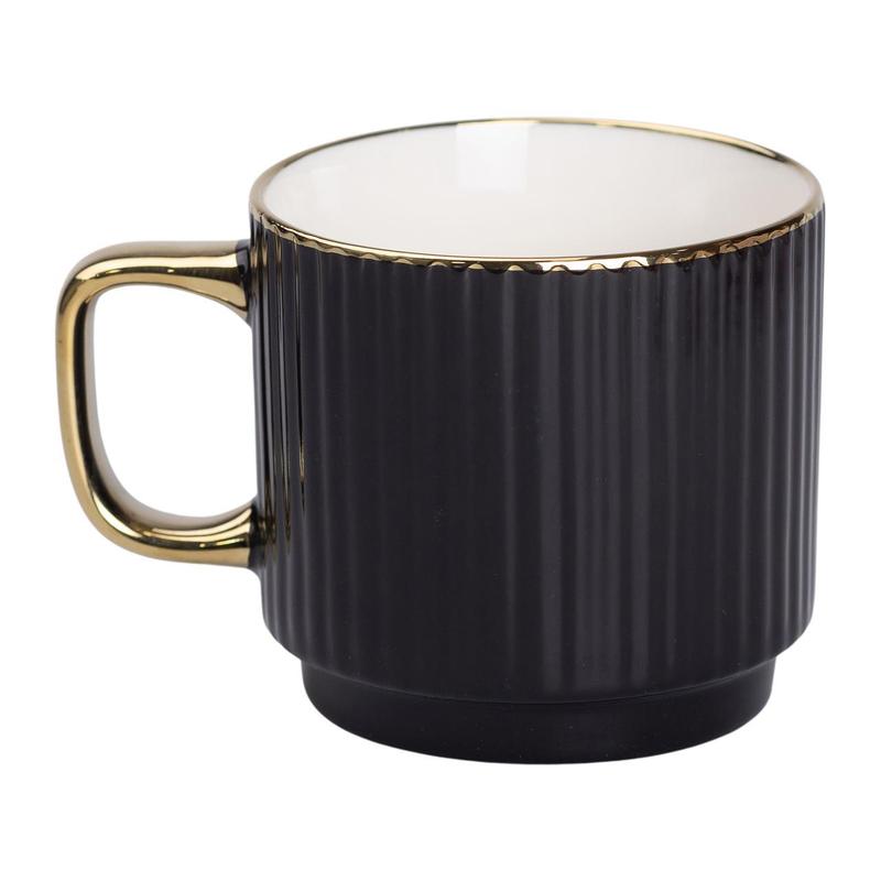 Чашка фарфоровая с золотым ободком и золотой ручкой 300 (мл) черная rx-n231129b