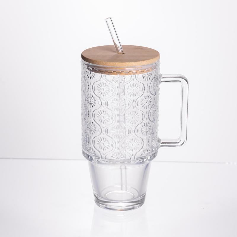 Стеклянная кружка с трубочкой и крышкой -- это удобный и стильный аксессуар для повседневного использования. Она выполнена из прочного прозрачного стекла с приятным янтарным оттенком, имеет удобную ручку для комфортного удержания и герметичную крышку, которая предотвращает проливание. В комплекте предусмотрена многоразовая трубочка, что делает кружку практичным решением для холодных и горячих напитков. Такой вариант идеально подойдет для дома, офиса или в подарок, а современный дизайн добавит эстетики в каждое чаепитие или кофепитие. Основные характеристики стеклянной чашки с крышкой и трубочкой: Высота: 18.5 см; Объем: 750 мл; Верхний диаметр: 9 см; Нижний диаметр: 6 см; Материал: стекло, бамбук (крышка). Особенности стеклянной кружки с трубрчкой на подарок: Изготовлена из прочного стекла; Удобная ручка для комфортного удержания; Герметичная крышка предотвращает проливание напитков; В комплекте многоразовая трубочка для удобного использования; Подходит для горячих и холодных напитков; Легко мыть и ухаживать за изделием; Стильный современный дизайн, который дополнит любую кухню. Стеклянная кружка с крышкой и трубочкой -- это не только удобный и практичный аксессуар для повседневного использования, но и стильный элемент вашей кухни. Она идеально подходит для тех, кто ценит комфорт, заботится об экологии и любит наслаждаться напитками с удовольствием.