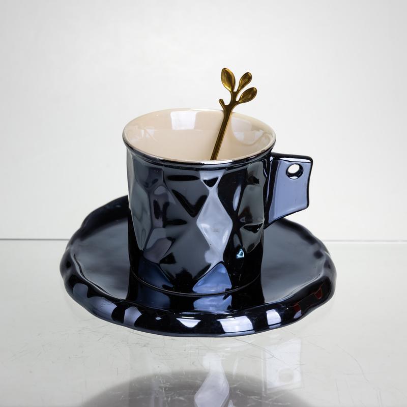 Чашка фарфоровая для кофе 200 (мл) с блюдцем и ложкой, красивая чашка в подарок черный fm-...