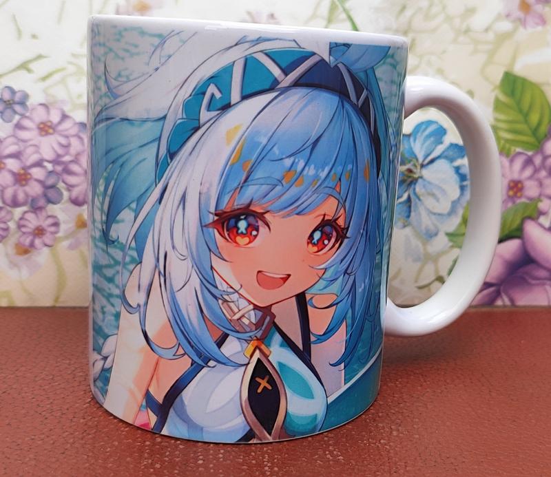 Новая чашка с гидро персонажем игры Геншин импакт Муалани. Объем 330 мл Отличный подарок для фаната игры.