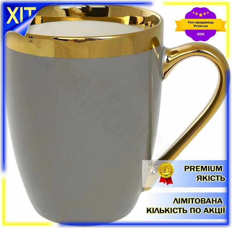 Dm кружка фарфоровая золотая спецификация 2.2 линия 360мл серого цвета с золотой каймой дл...