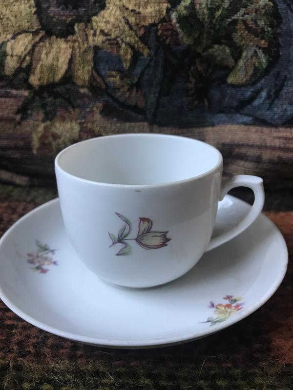 Милая кофейная парочка из бабушкиного буфета. Легкий звонкий фарфор. Завод Вербилок {см.клеймо}. Отличная сохранность. Раритет!