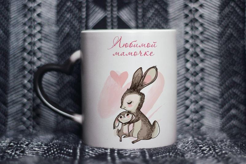 чашка черного цвета,при наливании кипятка становится белой и появляется принт