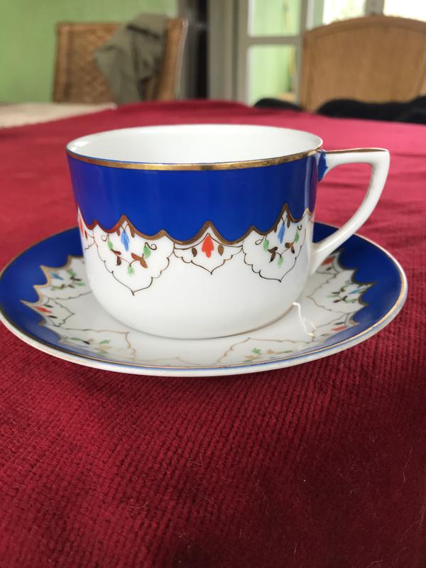 Винтажная чайная пара {чашка с блюдцем} середины прошлого века {Полонский фарфоровый завод -см. Клеймо}, ручная роспись. Идеальное состояние, без сколов, трещин и потёртостей позолоты. Остатки роскоши!