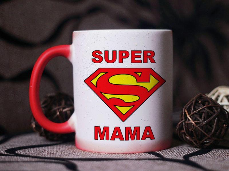 Чашка красного цвета,виден оттенок принта. При наливании кипятка становится белой, когда остывает обратно красной.