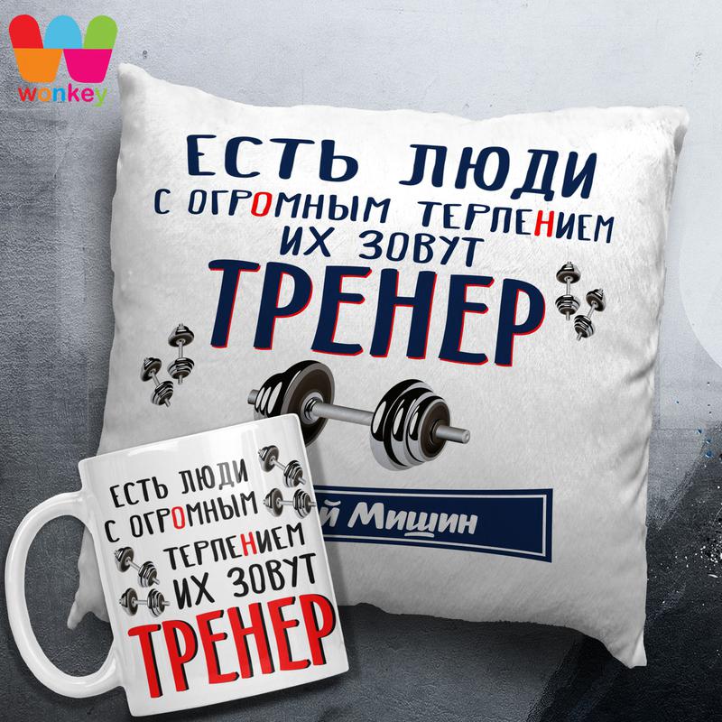 Подушка + чашка\кружка ко дню тренера\ з днем тренера