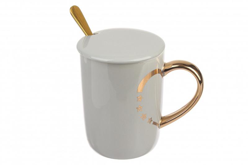Чашка керамическая 66-4820 - Объем 350 мл - Размер диаметр 8 см; высота 10,5 см; ширина 12 см - Комплектация ложечка и крышка