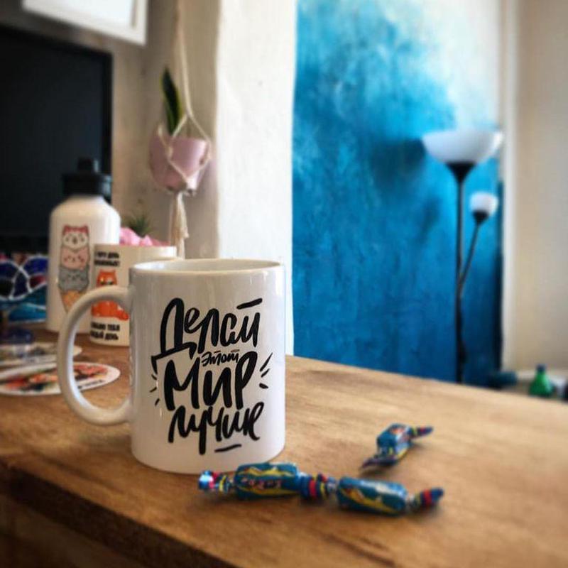 Керамическая кружка вмещает в себя 330 мл любимого напитка.
