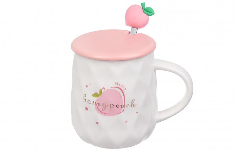 Чашка керамическая "Honey peach" (66-532) - Объем 380 мл - Размер диаметр 8,5 см; высота 10,5 см; ширина 11,5 см - Комплектация ложка, крышка