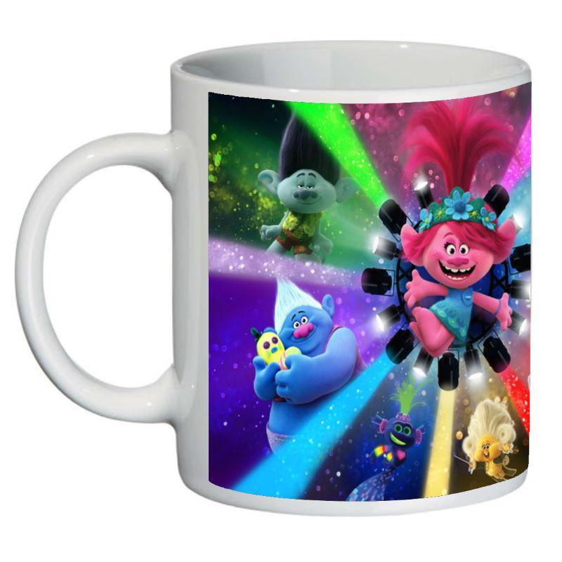 Керамическая кружка с ярким принтом мультфильма Тролли внесет позитива в Ваше чаепитие. Станет приятным подарком для Ваших родных. Порадует друзей. Материал Керамика Емкость 330 мл