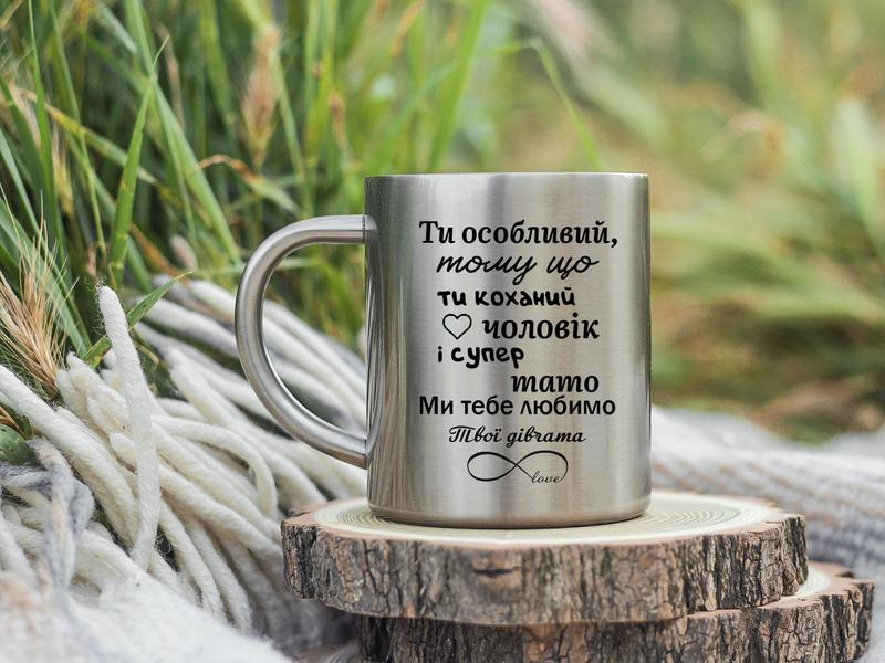 Кружка металлическая объемом 300 мл. Уникальность кружки в том, что она имеет двойные стенки, а это значит, что напиток надолго останется горячим и при этом не будет обжигать руки