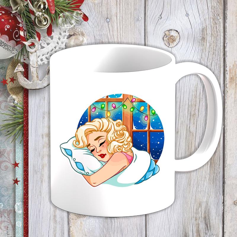 Белая кружка (чашка) с новогодним принтом мэрилин монро (приятных снов)