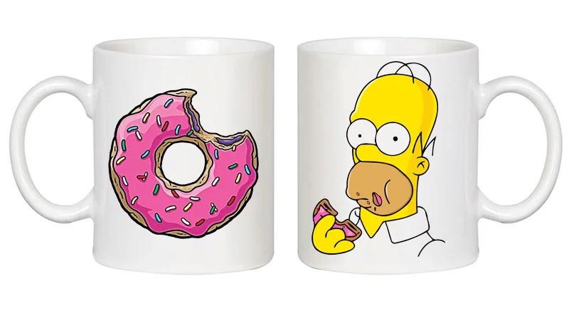 Парные белые чашки (кружки) с принтом "симпсон и пончик"