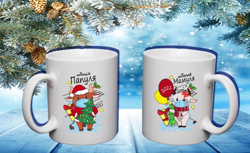 Парные белые чашки (кружки) с принтом "символы 2021 года: папуля и мамуля"