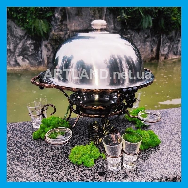 Садж кованый виноград "vip" 36 см для подачи шашлыка - 3 соусницы, 6 стеклянных рюмок + кр...
