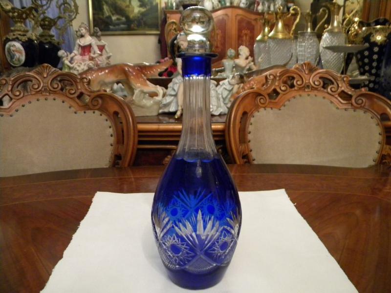 Старинный графин кобальт резьба цветное стекло ссср 1950 годов