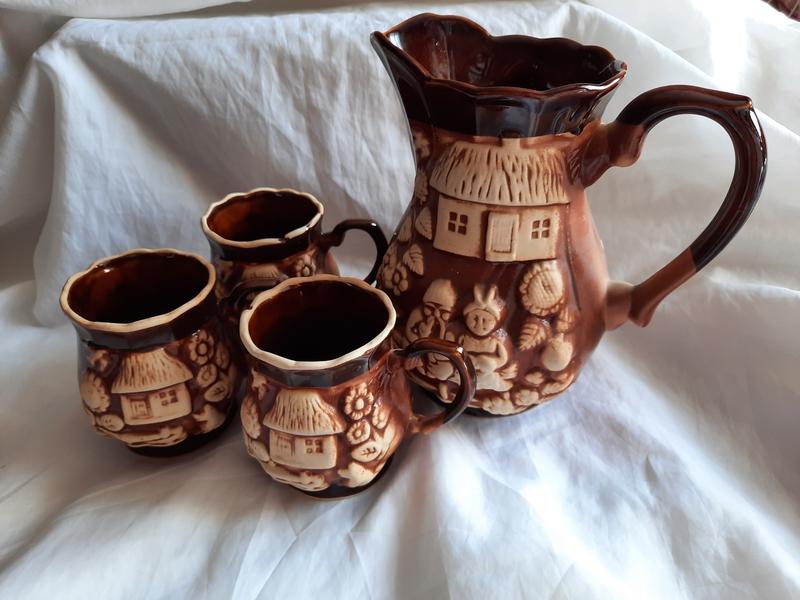 Графин и три чашки. Стан нового. Висота графина 20 см, чашок 10 см. УП, НП.