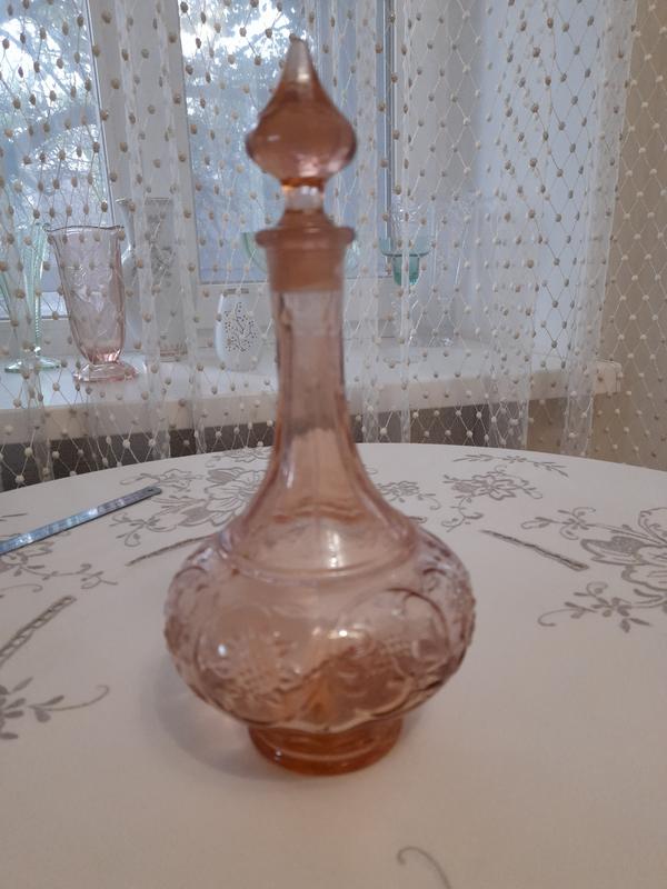выс. без пробки 21см., с пробкой 25см.Графин в идеальном состоянии. Основание пробки имеет сколы.