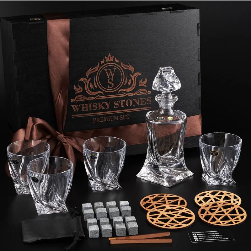Набор для виски "quadro" в подарочной упаковке на 4 бокала с графином, камни для виски, ку...
