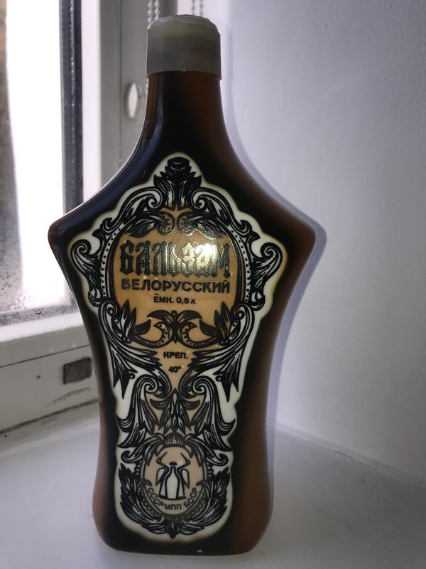 Штоф "Белорусский бальзам", фарфор, емкость 0,5л, СССР МПП БССР с логотипом завода "Кристалл" (два аиста), Минский фарфоровый завод, МФФЗ, МФЗ, Минск ФФЗ, выпуск до 1985 года, стан - вживаний, автор - В. Леонтович 100-150грн