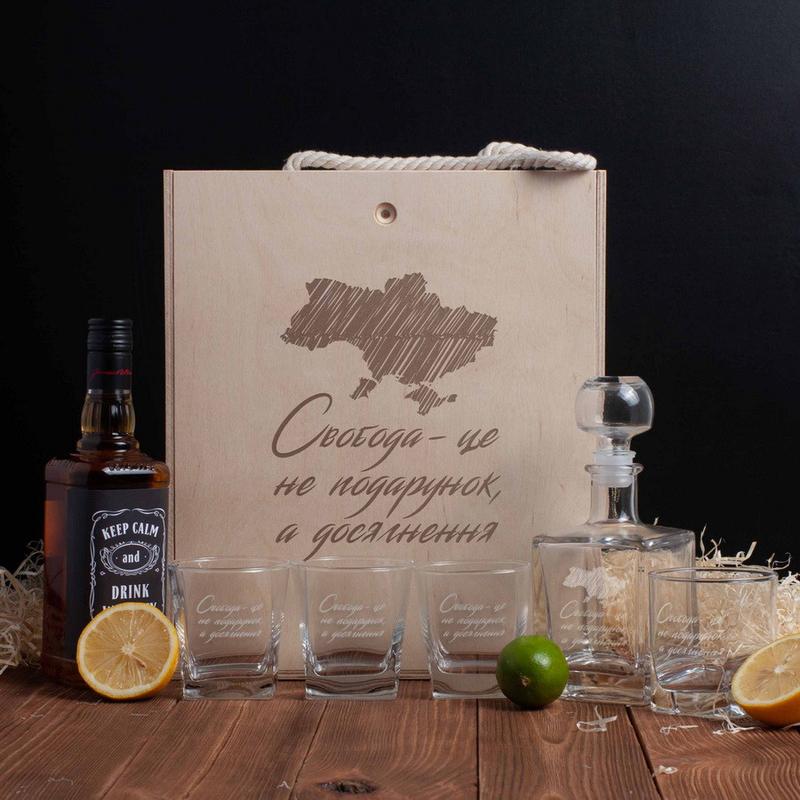 Набор для виски "свобода - це не подарунок, а досягнення" в ящике l, украинская