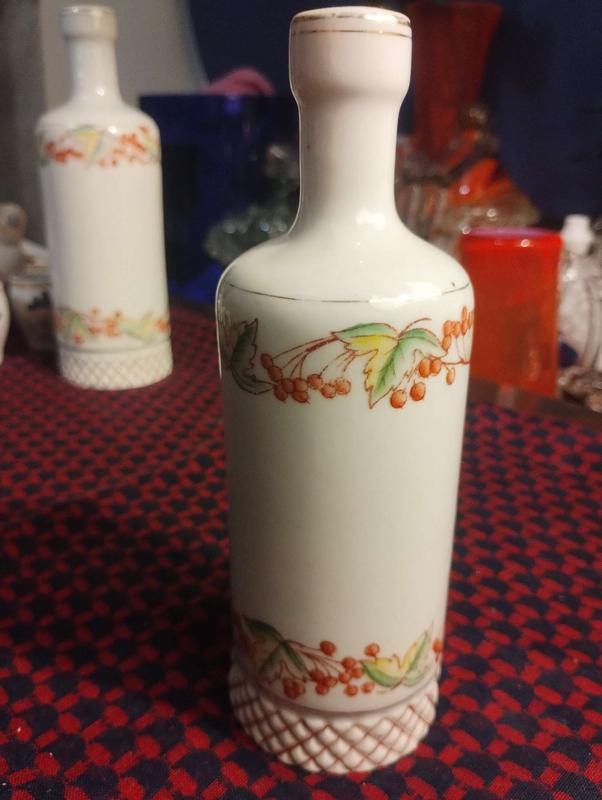 Штоф «Красная смородина» Ручная роспись. Винтаж. 1945-1959 года. Коростень. 23 см Ручная роспись орнаментом. Объем 0.50 л. Очень красивый. Редкий. В хорошем состоянии. Коростинский фарфоровый завод - одна из старейших в Украине фарфоровых мануфактур. м. Короcтень, Житомирская область, Украина. Завод основан в 1909 году. Производство прекратилось в 2012 году. FARF_SHTOF_0006