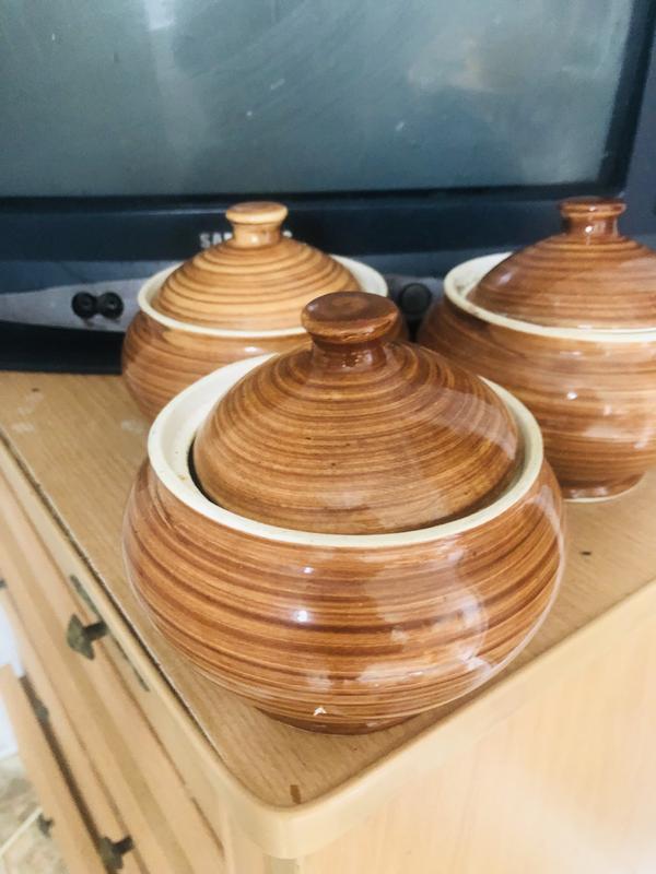 Глиняные супницы с крышками, объем 0,5 л; 3 штуки..