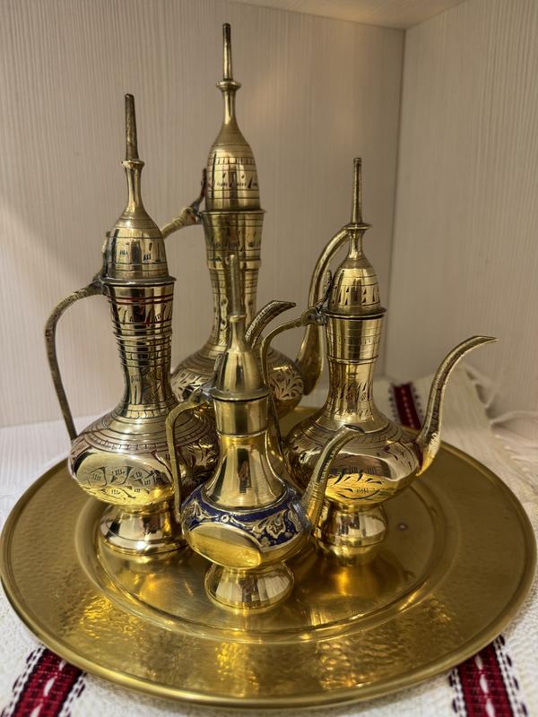 В ідеальному стані Заміри на фото, найбільший- 24 см, найменьший- 13,5 см Витончені глечики в східному стилі. Матеріал - латунь, прикрашена візерунком стихель. Предмети знаходяться у відмінному колекційному стані. Матеріал - латунь. Ціна за один Ціна від найбільшого до меншог, 24 см-580 грн 20 см- -560 грн 17 см- 540 грн 13 см-500 грн